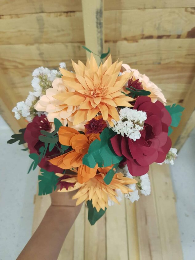 Nos encanta realizar estos ramos porque muchas de vosotras os sentís muy cómodas con ellos al parecerse mucho a los de flor natural pero con la innovación y sostenibilidad del papel. Y cómo no, lo podrás guardar para siempre, son muy fáciles de acoplar a una vasija para tu hogar.
