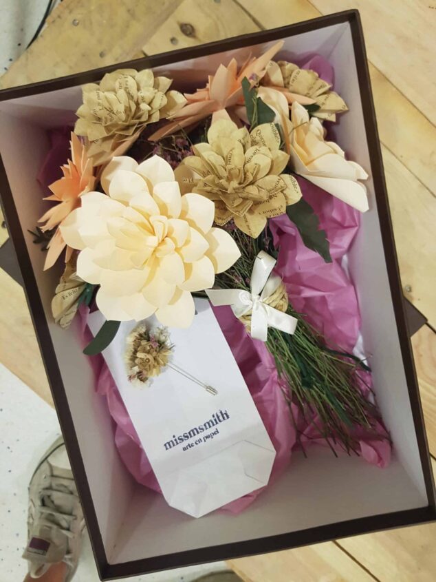 La técnica de plegado del origami fue con la que comenzó Missmsmith con ramos de flores de papel llenas de detalles para que puedas dar un toque muy especial a tu celebración.