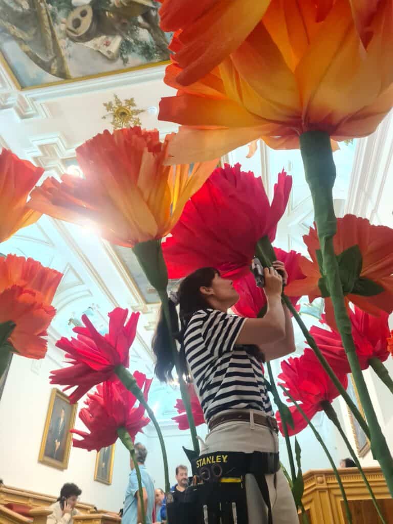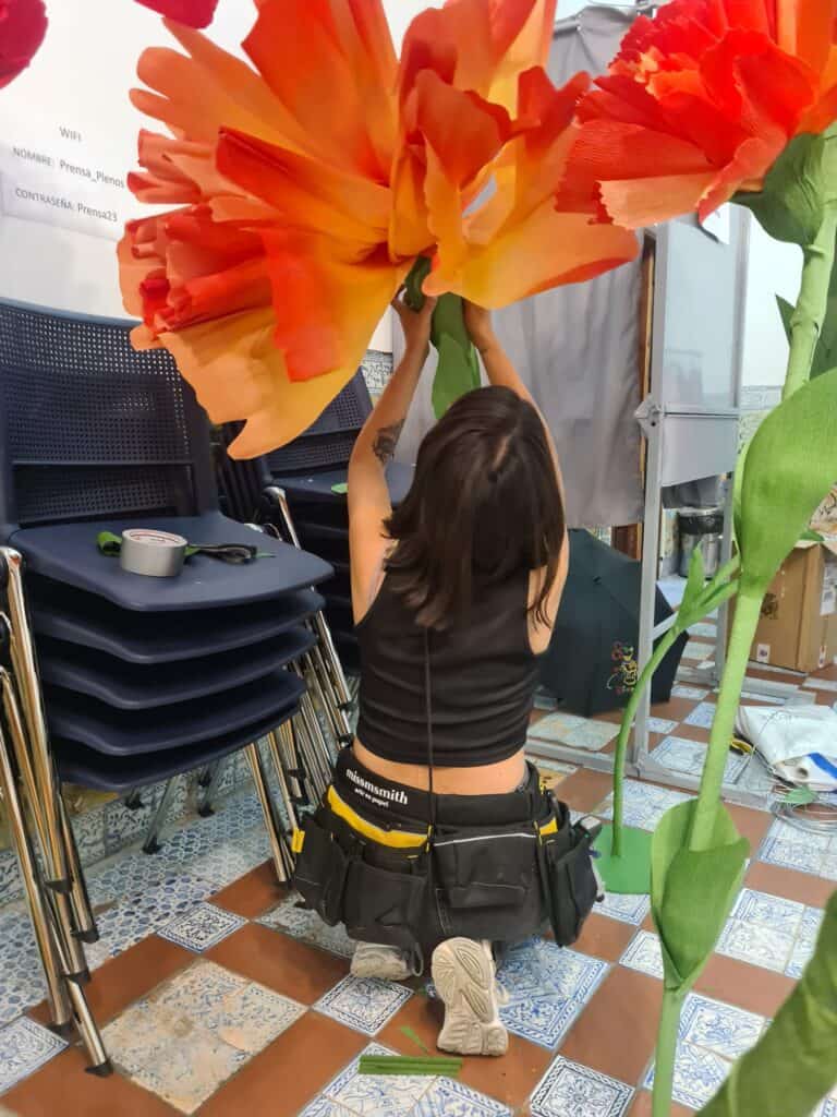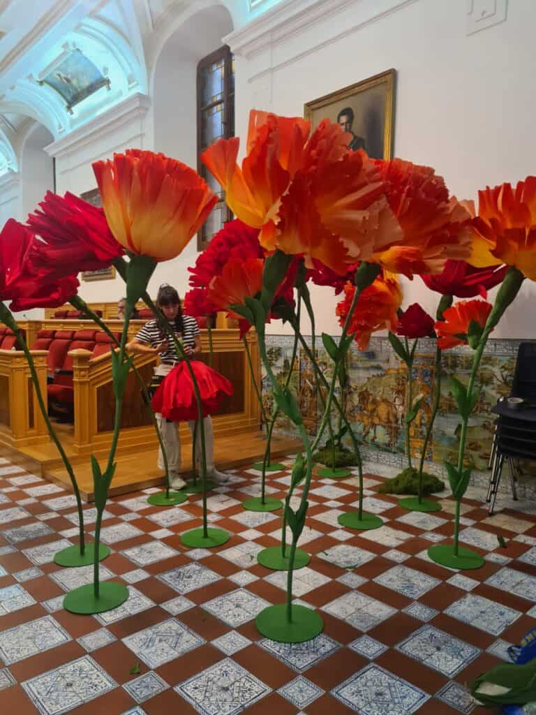 Con la presentación de la nueva equipación de España para los próximos juegos olímpicos que se disputan en el país galo en unos días, tuvimos la suerte de acompañar esta aventura con maxi claveles de papel en rojo y en degradado naranja-amarillo.